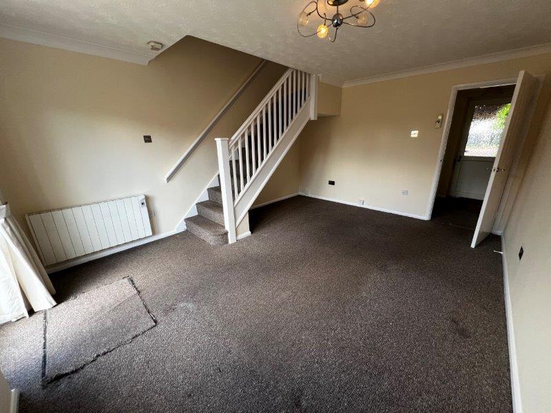 The home is offered unfurnished and comprises entrance hall, living room. modern fitted kitchen and door leading to enclosed rear garden, Upstairs off the landing are two bedrooms and family bathroom with shower above bath.