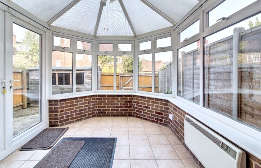 The home is offered unfurnished and comprises entrance hall, modern fitted kitchen, living room and conservatory, Upstairs off the landing are two double bedroom and family bathroom with shower above bath.